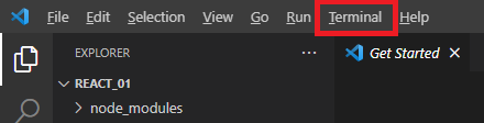 Create-react-app 설치 이후 서버를 실행하기 위해 아래 그림과 같이 터미널을 열어준다.