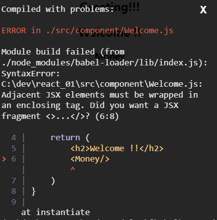 즉, Welcome의 <h2>와 <Money/> 안에 있는 <h3>가 리턴되어 2개의 Object가 리턴됨으로서 오류가 발생했습니다.