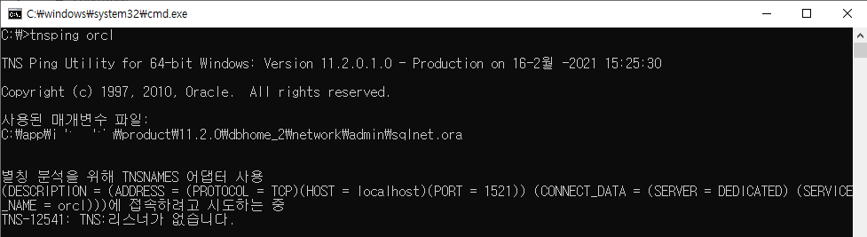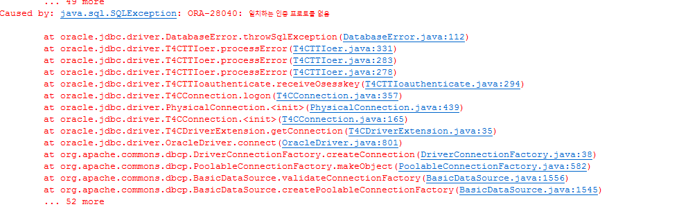 | ORA-28040 : 일치하는 인증 프로토콜 없음 (0) | 2023.01.26 |