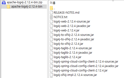 log4j-slf4j-impl-2.x.x.jar / log4j2-2.x.x용 바인딩 파일 (slf4j를 사용하지 않는 경우 제외)