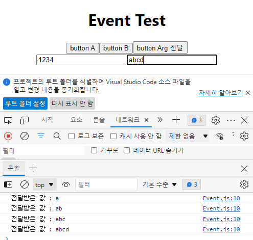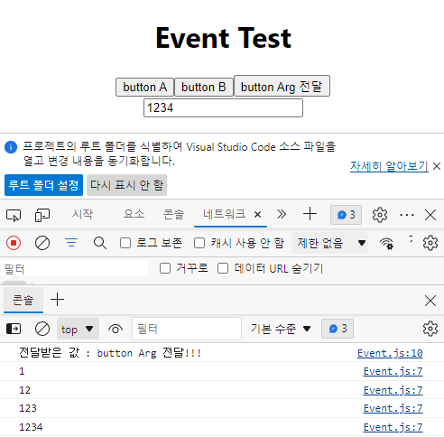 Event.js 파일을 수정합니다.  (함수 추가, 버튼 추가)