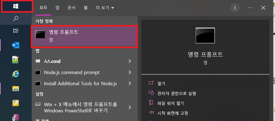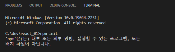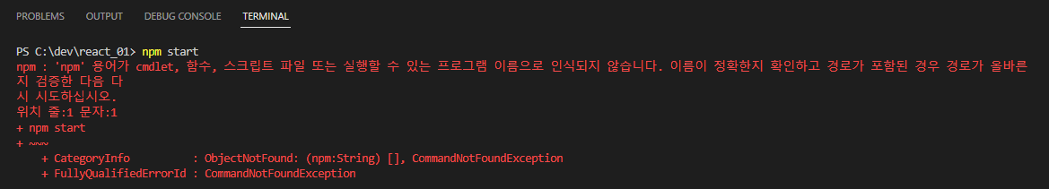 # 오류.2 기본터미널 프로그램을 cmd로 변경하였으나 npm이 실행이 되지 않는 경우