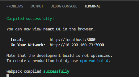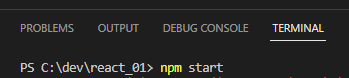 Create-react-app 설치 이후 서버를 실행하기 위해 아래 그림과 같이 터미널을 열어준다.