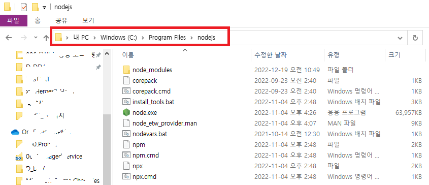 설치한 nodejs의 경로를 환경변수에 추가한다.